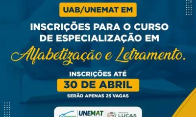 A Universidade Aberta do Brasil (UAB), polo de Lucas do Rio Verde, está com inscrições abertas para o curso especialização em Alfabetização e Letramento. A pós-graduação,...