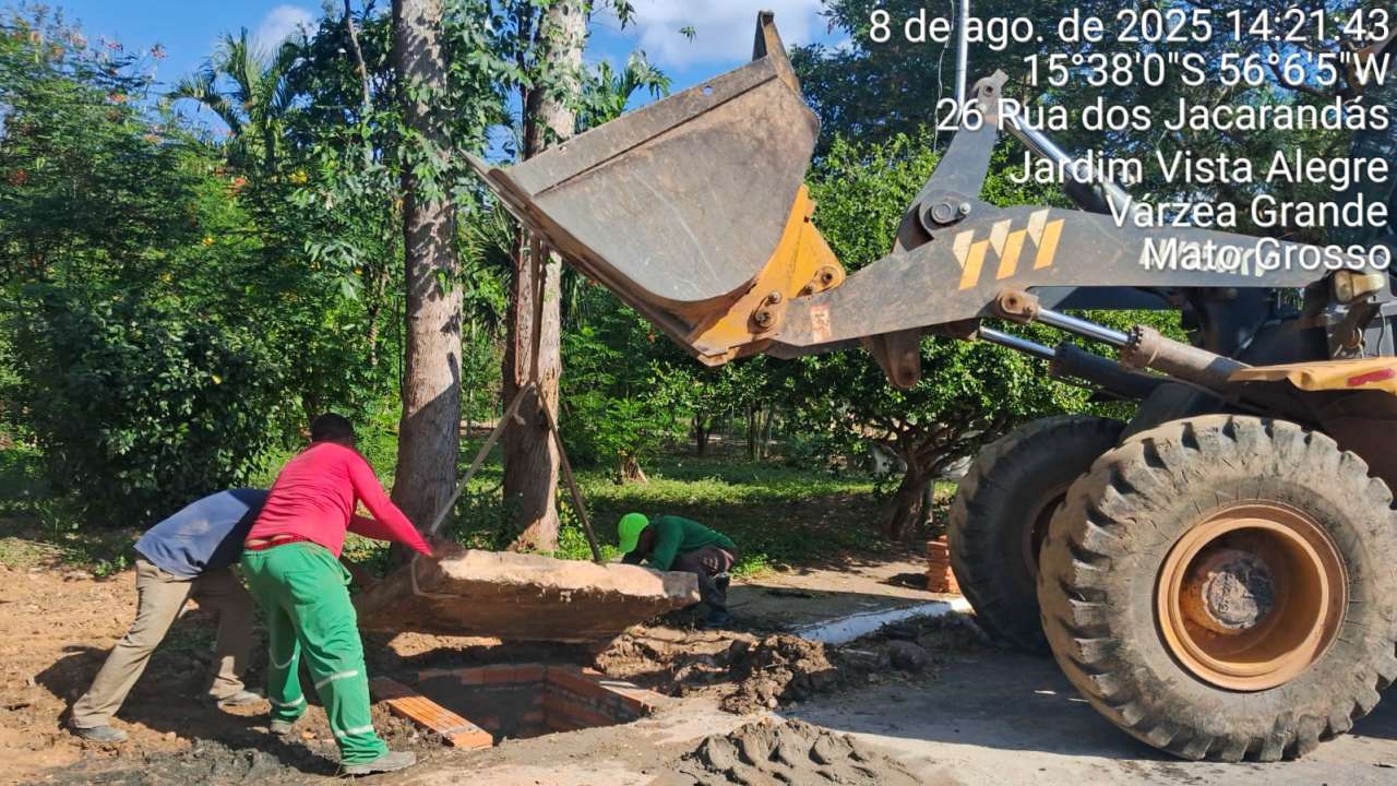 A Prefeitura de Várzea Grande, por meio da Secretaria de Viação e Obras, está realizando, com equipe própria, a limpeza e recuperação de diversas bocas de lobo no bairro Jardim Vista Alegre. O trabalho foi iniciado na última quinta-feira (7) e deve ser concluído até o final desta semana, com o objetivo de melhorar o sistema de drenagem e prevenir alagamentos.