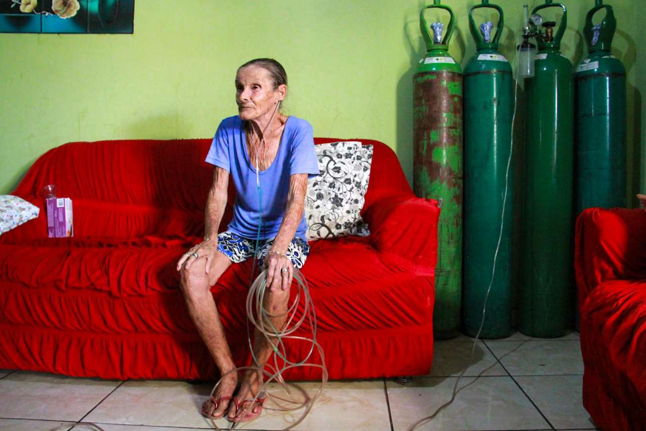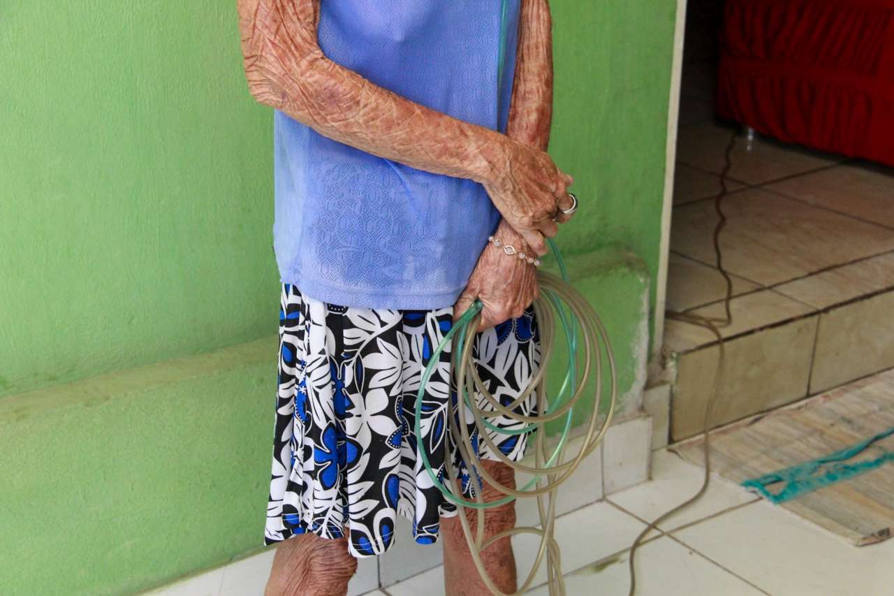 DESAFIOS – A vida de dona Maria nunca foi fácil. Natural de São Paulo, ela chegou a Várzea Grande aos 22 anos, em busca de melhores oportunidades. Aos 8 anos, ainda na infância, começou a fumar para tentar afastar os mosquitos da roça onde vivia, um hábito que, anos depois, comprometeu gravemente seus pulmões. Hoje, ela respira apenas com um deles e precisa do auxílio constante do oxigênio e de medicamentos para broncodilatar as vias respiratórias.