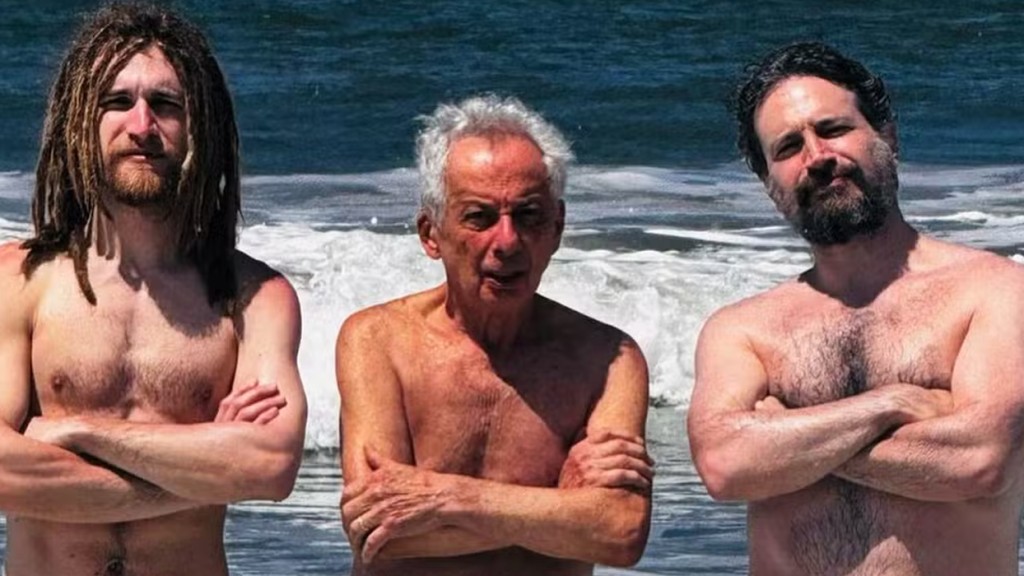 Caco Ciocler exibe clique raro ao lado do filho e do pai em praia: ‘No filtro (solar)’
