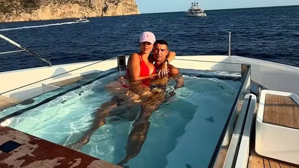 Cristiano Ronaldo e Georgina curtem iate luxuoso com os filhos: ‘Meus 2 amores’