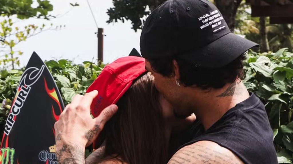 Gabriel Medina impressiona namorada com homenagem em pranchas e ganha chamego