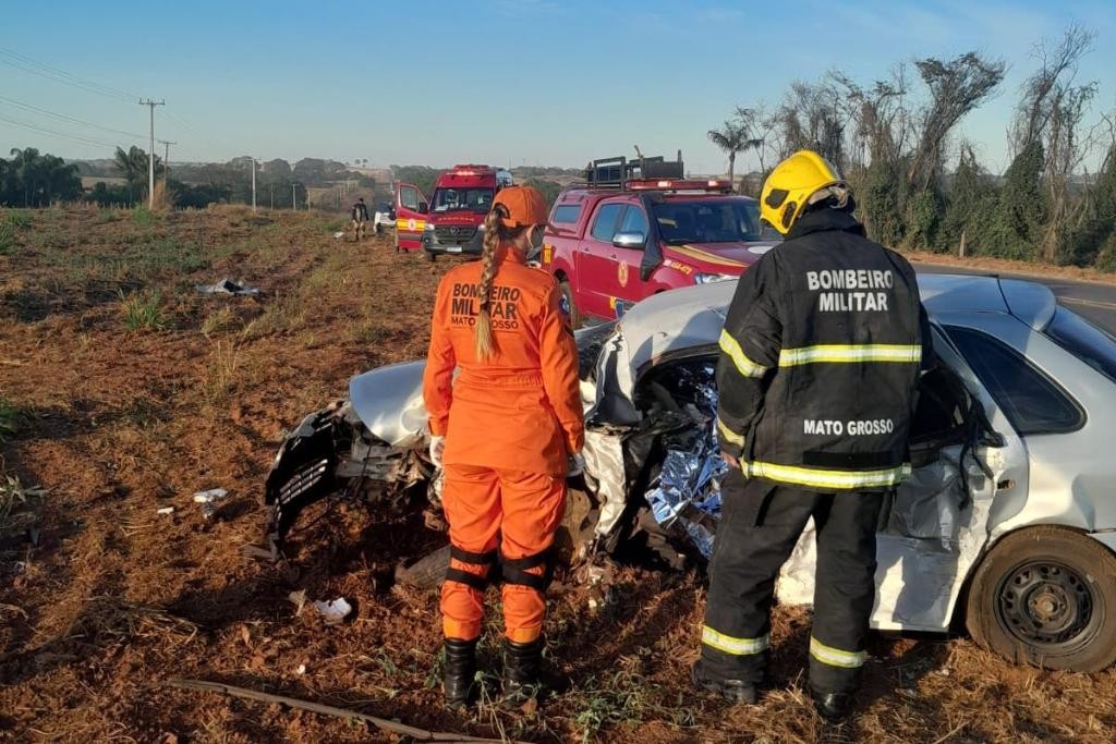 Corpo de Bombeiros presta socorro a vítimas de colisão frontal na BR-163
