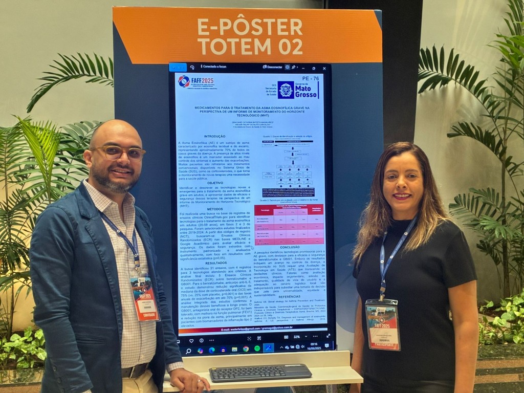 O farmacêutico Weder Felipp Ochiuto Carvalho e a nutricionista Graciane Catarina Magalhães, ambos servidores da Secretaria de Estado de Saúde (SES-MT), tiveram trabalho científico aprovado no XIII Fórum Brasileiro sobre Assistência Farmacêutica e Farmacoeconomia (FAFF 2025), um dos mais importantes congressos do setor no país.