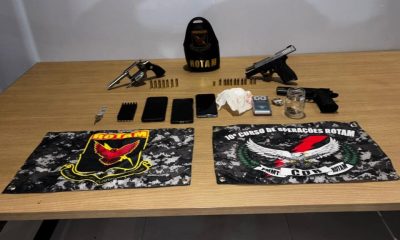 Na busca pessoal e dentro do imóvel, os militares localizaram uma espingarda de calibre 12 carregada com cinco munições, um tablete e uma porção de cocaína. Aos policiais da Rotam, o suspeito afirmou ser membro de uma facção criminosa. Ele foi detido e conduzido à delegacia da cidade.