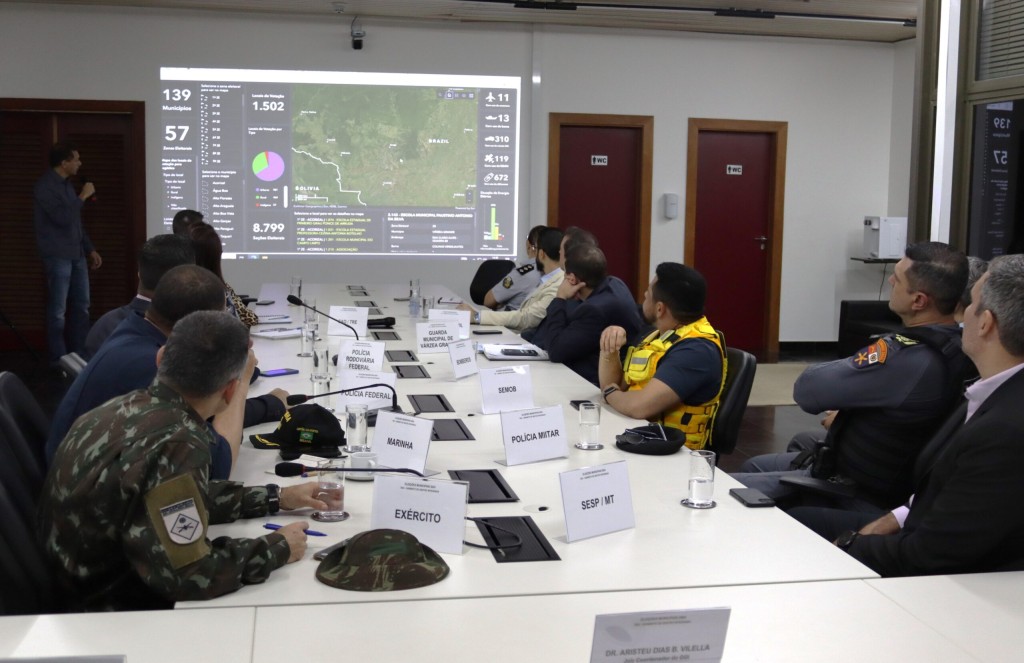 A reunião do GGI também tratou de outros assuntos, como a divisão das forças de segurança para atendimento aos locais de votação remanescentes (PRF, PF e PM); definição dos planos de segurança para o TRE-MT e para a Casa da Democracia; definição de policiamento para as sedes dos Cartórios Eleitorais, locais de apuração e totalização, locais de divulgação de resultados, locais de transmissão de resultados quando diversos dos Cartórios Eleitorais ou locais de votação; e definição da segurança para o Teste de Integridade das Urnas.
