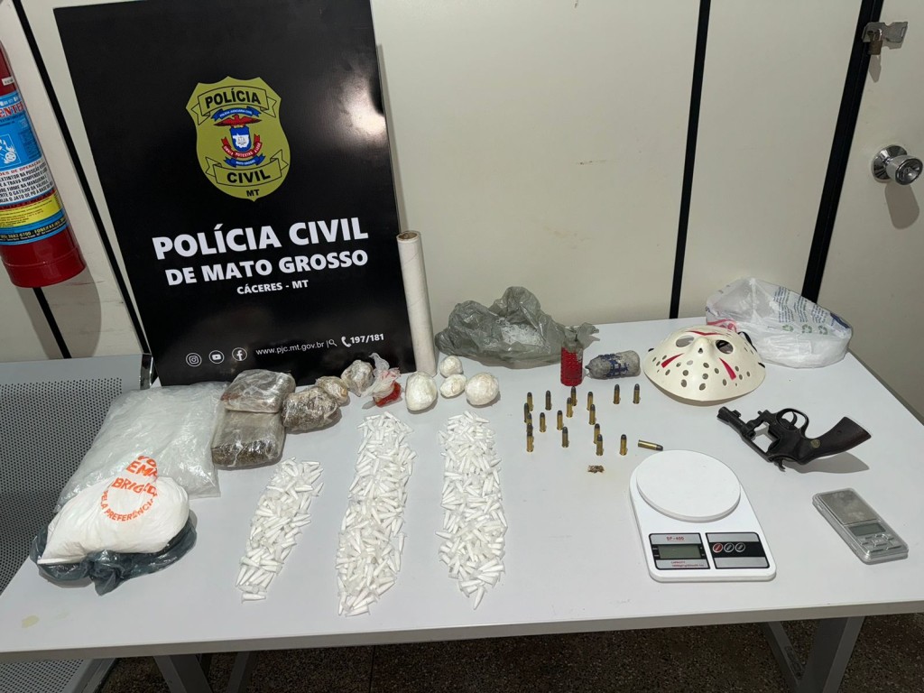 A ação dos policiais civis resultou também na apreensão de cerca de 480 pinos de cocaína, tabletes de maconha, munições, granadas, uma arma de fogo, balanças de precisão, além de aparelhos celulares que foram danificados pelo grupo no momento da abordagem.