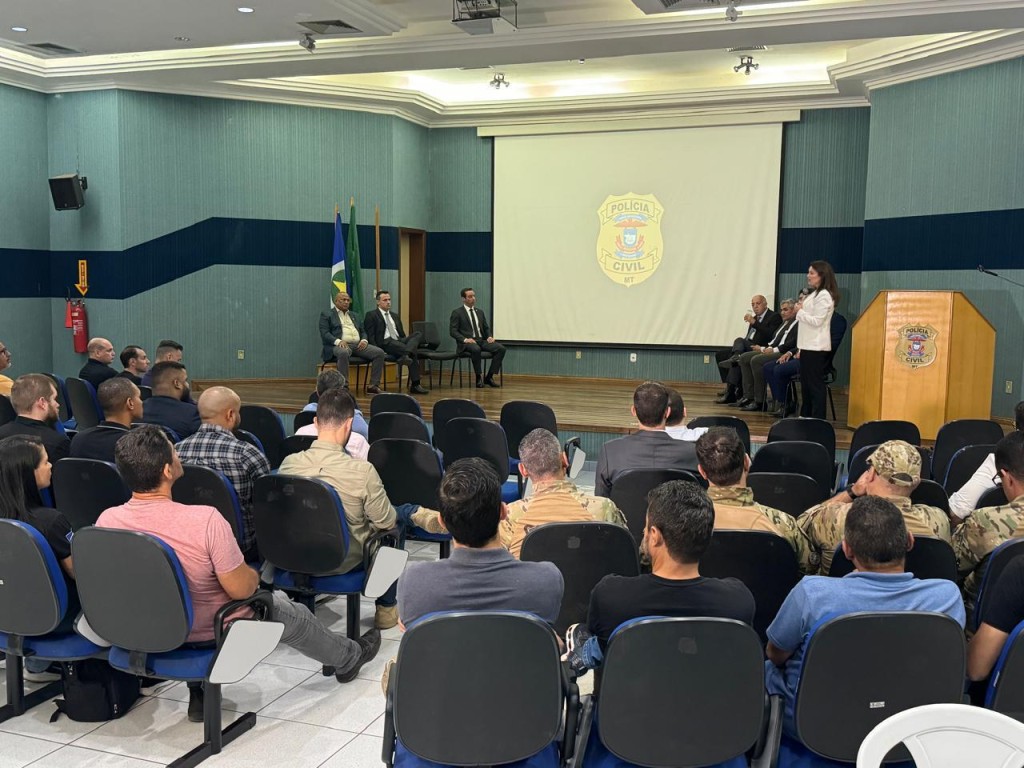 Presente no encontro, o delegado titular da Delegacia Especializada de Roubos e Furtos de Rondonópolis (DERF), Santiago Sanches, destacou a relevância do curso para as atividades desenvolvidas pela DERF.
