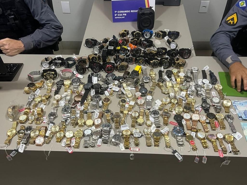 Policiais militares do 7º Comando Regional prenderam um homem, de 35 anos, pelo crime de furto, na cidade de Sapezal. Com a dupla, a PM recuperou 148 relógios que foram levados de um estabelecimento e uma quantia de R$ 169,00 em dinheiro.