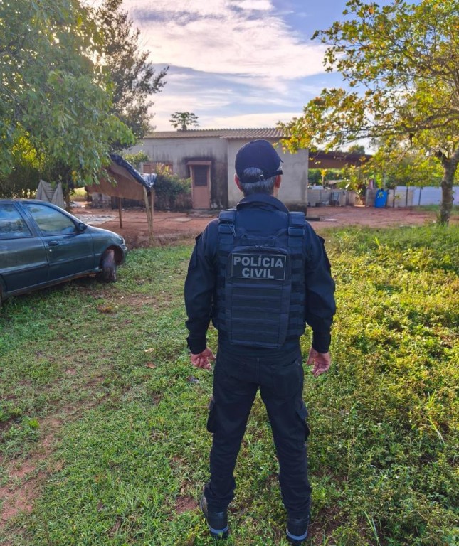 Diante das ordens de prisão preventiva e de busca e apreensão domiciliar deferidos pela Comarca de Poxoréu, os policiais civis foram até o endereço do investigado.