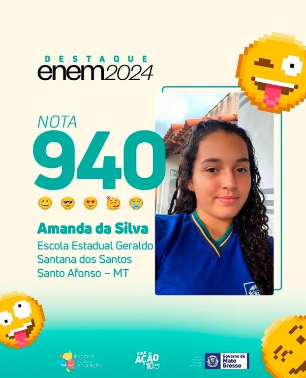 A adolescente, que estuda na Escola Estadual Geraldo Santana dos Santos, em Santo Afonso, conseguiu fazer 940 dos 1000 pontos possíveis.