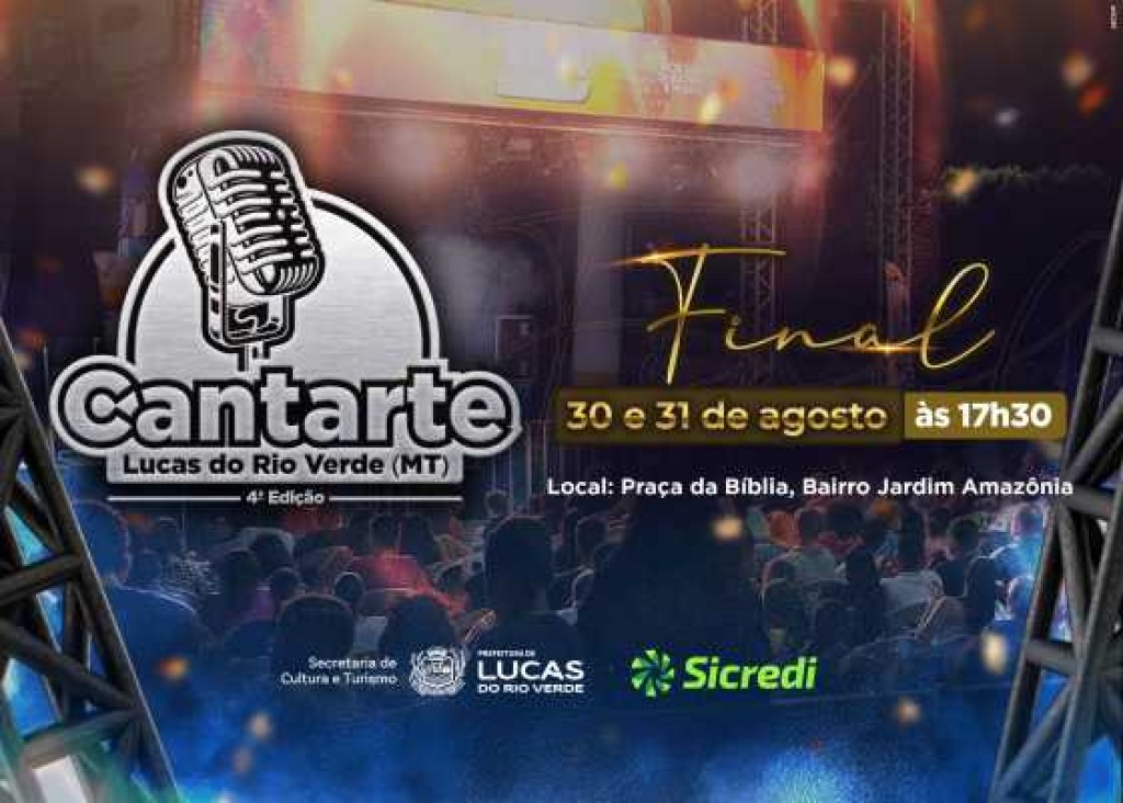 Nos dias 30 e 31 de agosto, sábado e domingo, a partir das 17h30, na Concha Acústica da Praça da Bíblia, Lucas do Rio Verde viverá a emoção da final do Cantarte 2025, com apresentações de 36 artistas e