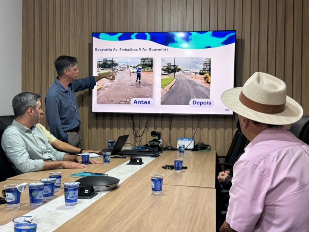 A diretoria da concessionária Águas de Sinop apresentou ao prefeito Roberto Dorner, na manhã desta quinta-feira (19), um balanço das intervenções realizadas em diversos pontos do município, após cobranças do chefe do Executivo Municipal e do Comitê de Fiscalização Municipal [Decr. 13/2026], que identificaram falhas em serviços executados anteriormente pela concessionária.