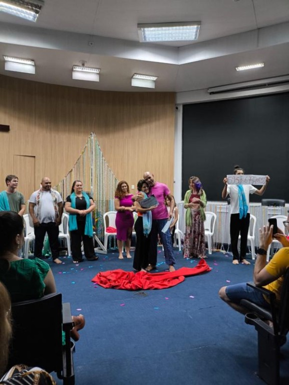 Rafaela Giovelli Ferraz, professora e recreadora, compartilhou sua experiência enriquecedora com a oficina: “Participar foi uma experiência incrível. O teatro nos tira da zona de conforto, estimula nossa criatividade, expressão e conexão com os outros. O curso foi também sobre autoconhecimento e coragem.”