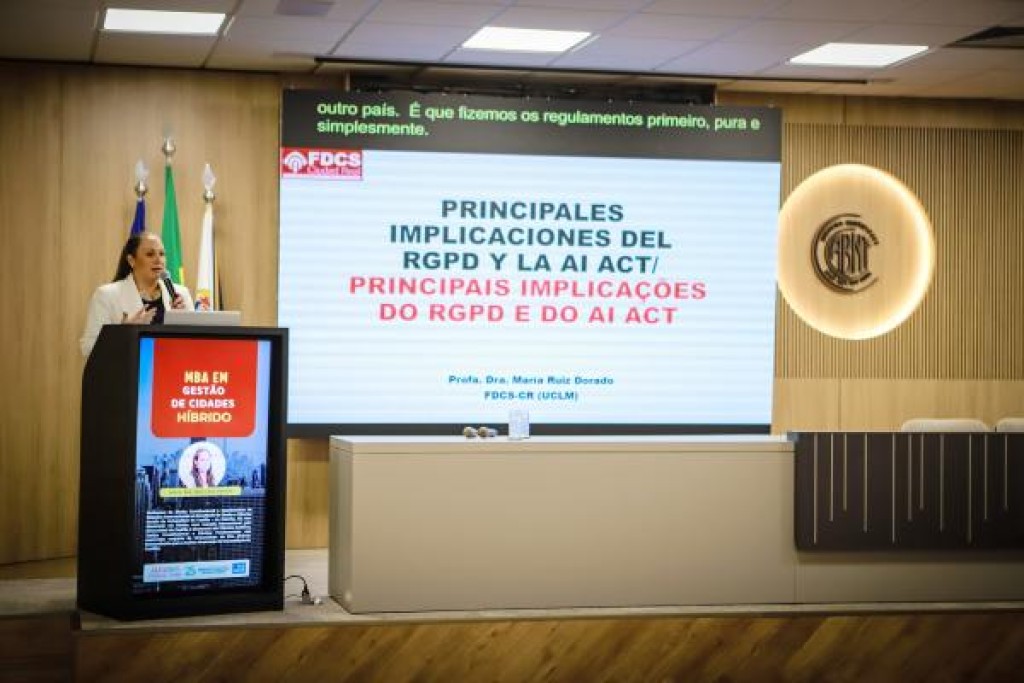 O 12º módulo do MBA em Gestão de Cidades, promovido pelo Tribunal de Contas de Mato Grosso (TCE-MT) em parceria com a Fadisp, abordou o tema “Implicaciones del Reglamento Europeo de Protección de Datos y de la Ley Europea de Inteligencia Artificial en el Proceso de Transformación Digital”, nesta sexta-feira (29). Ministrada pela professora María Ruiz Dorado, da Universidad de Castilla, na Espanha, a aula foi realizada no auditório da Escola Superior de Contas, com transmissão ao vivo pelo Canal do TCE-MT no YouTube e pela TV Contas (Canal 30.2).