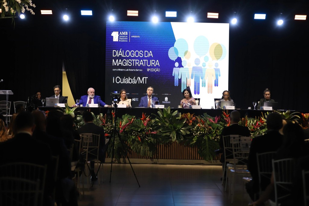 A 18ª edição do programa “Diálogos da Magistratura” foi realizada na tarde desta segunda-feira (18 de agosto), na sede da Associação Mato-grossense dos Magistrados (Amam), em Cuiabá. Conduzido pelo ministro Luís Roberto Barroso, presidente do Supremo Tribunal Federal (STF) e do Conselho Nacional de Justiça (CNJ), o encontro reuniu magistrados de todos os tribunais que compõem o Sistema de Justiça do Estado para debater o aprimoramento da Justiça no país.